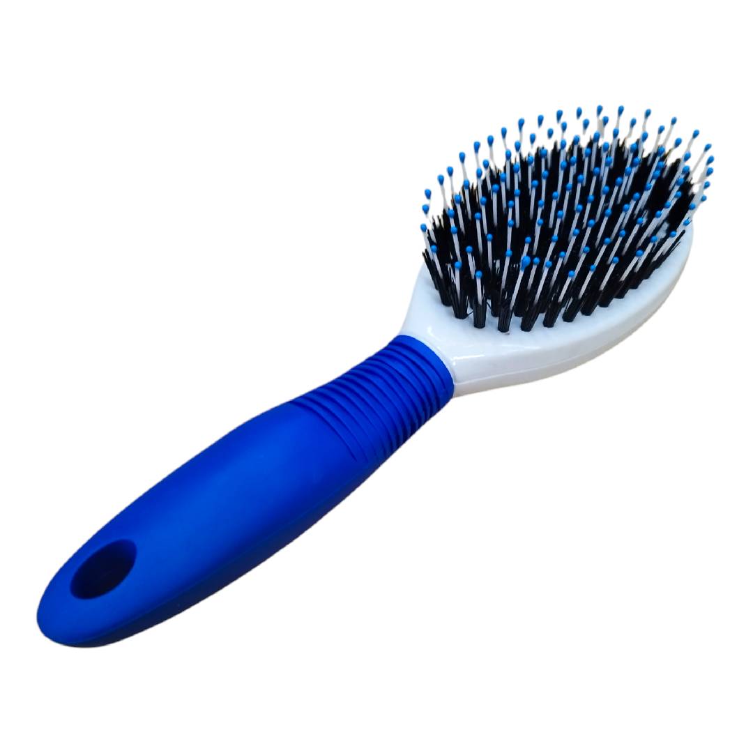 Este cepillo ovalado es una herramienta esencial para el cuidado y aseo de tu mascota. Está diseñado para eliminar el pelo suelto, la suciedad y los enredos leves del pelaje, dejando un acabado suave y brillante. Las cerdas de metal o plástico duro están rematadas con puntas protectoras redondas para garantizar que el cepillado sea cómodo y no irrite la piel de tu mascota. El mango ergonómico ofrece un agarre firme y antideslizante, haciendo que el proceso de cepillado sea fácil y agradable tanto para ti como para tu compañero peludo.