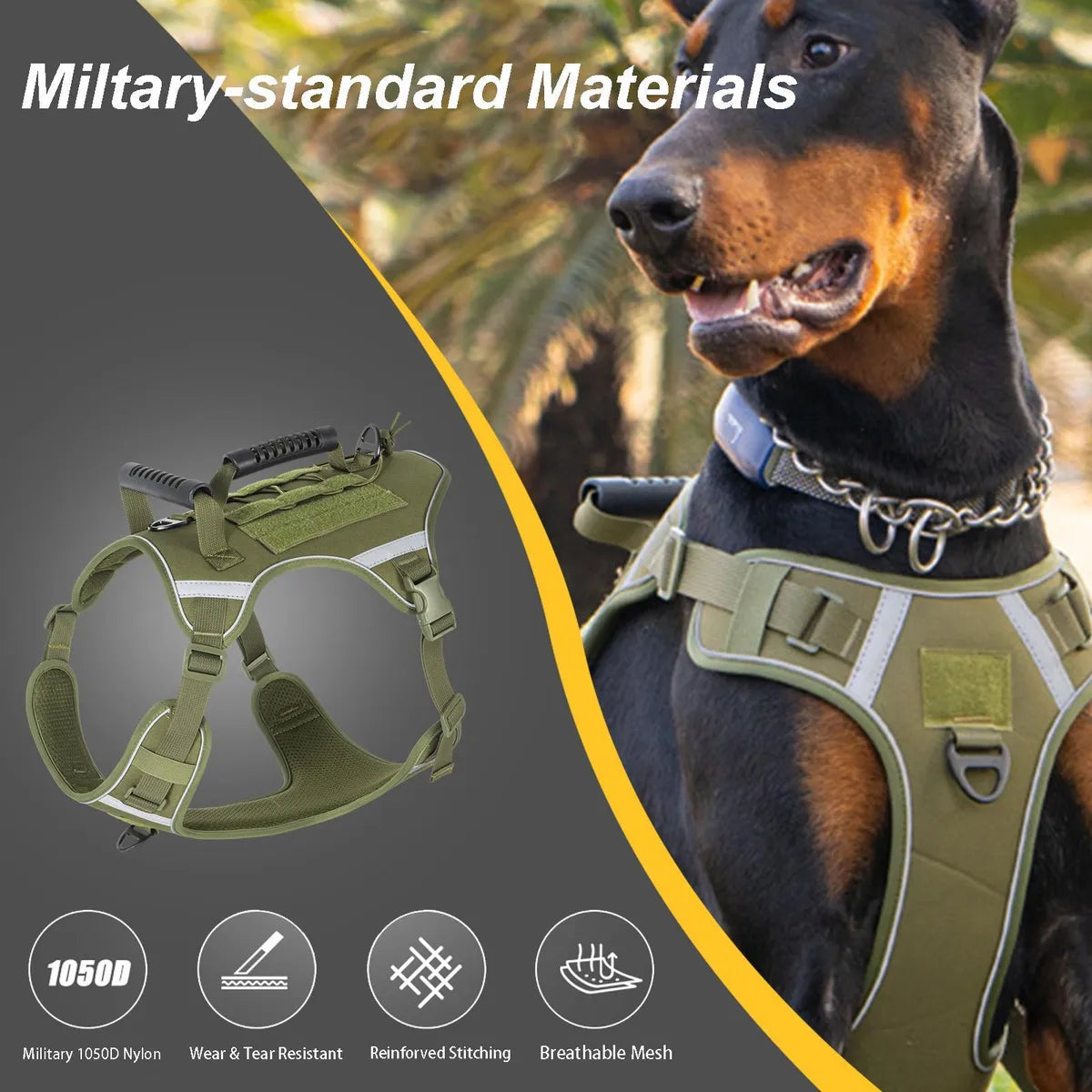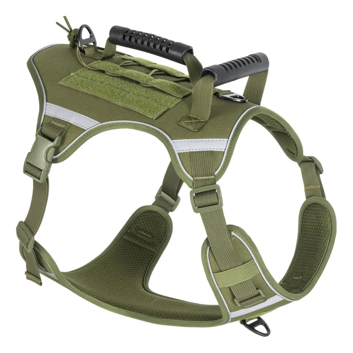 Este arnés está diseñado para la seguridad, el control y la durabilidad, ideal para mascotas activas, perros de servicio, o razas medianas y grandes que requieren un equipo robusto.