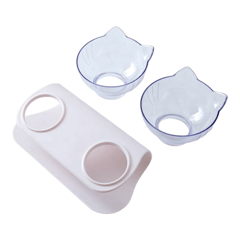 Diseño de tazón doble: mientras bebe agua, mientras come, la mascota no se secará la boca después de comer la comida, de acuerdo con el diseño relativo del hábito de la mascota.
