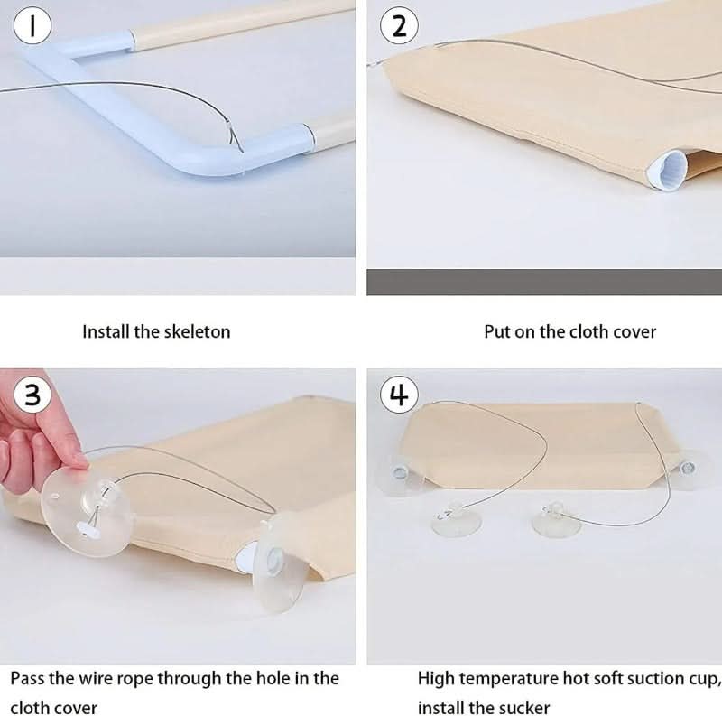 Fácil de Montar El asiento para ventana de gato se puede instalar en cualquier superficie lisa en pocos segundos, no se requieren herramientas. Consejos: antes de la instalación, asegúrate de que la superficie de la ventosa esté seca; en invierno, pon la ventosa en agua tibia para remojarla suavemente antes de usar.
