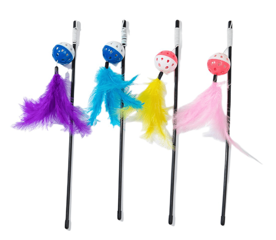 Ideal para gatos jóvenes y adultos, la vara de juguete con pelota y pluma proporciona entretenimiento y ejercicio a tu mascota, satisfaciendo su instinto de caza y brindándole diversión sin fin.