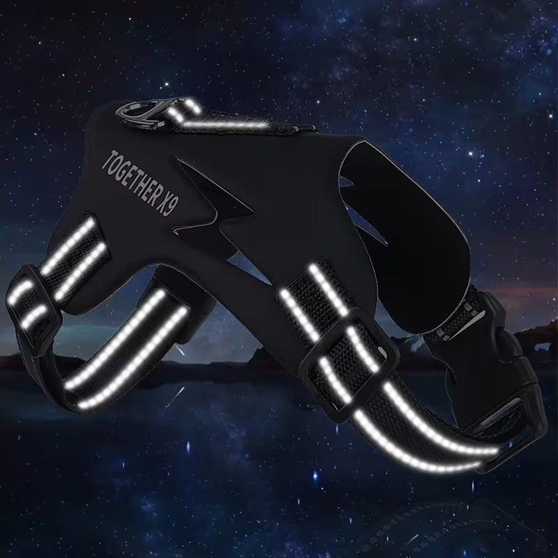 Control Superior: Incluye un asa de agarre rígida en la parte superior (con relieve de goma/plástico) para un control inmediato y seguro en situaciones críticas o para levantar al perro.